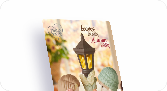 You Make Life More Colorful Figurine Playing in the autumn leaves, these best friends appreciate the joy of friendship. A snapshot of fall fun, this figurine tells someone they make each day colorful. Bisque porcelain. 5.5"H. 231024 | $85.00 I’m Nuts About You Figurine Autumn means crunchy leaves and warm sweaters. Featuring a cozy couple together on a fall day, this figurine is the perfect way to tell someone you’re nuts about them! Bisque porcelain. 4.5"H. 221020 | $75.00 I’m Wrapped In Your Love Figurine The air is chilled, but this sweet couple wraps up in a favorite blanket to enjoy their time outdoors. Give this romantic figurine to someone who makes you feel wrapped in love. Bisque porcelain. 4.75"H. 231023 | $85.00 4 PreciousMoments.com | 866-336-2554