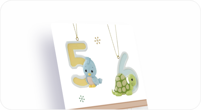 Baby’s 1st Christmas Photo Frame Ornament This ornament is perfect for both baby boys and girls and features a little one in a Santa hat sharing a sweet smile. Holds 2.5" Dia. photo. Bisque porcelain/Plastic. 3.5"H. Black Hair/Dark Skin | 201010A | $35.00 Blond Hair/Light Skin | 201010 | $35.00 37