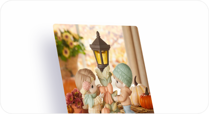 Contents not included. NEW Leaves Are Falling, Autumn Is Calling Lighted Figurine A sweet couple decorates their lamppost with cornstalks, gourds, haybales, and flowers for autumn. Sharing enthusiasm for the cozy season brings people closer, and this figurine honors all the special beauty of fall. Lamppost lights up with included 2 button cell batteries. Bisque porcelain/Resin. 7.5"H. 241404 | $85.00 NEW Happy Fall Lighted Figurine An unlikely friendship between a sweet scarecrow and a tenacious crow inspires warm and cheery fall feelings. This unique figurine lights up to illuminate “Happy Fall” carved into the pumpkin. Includes 3 button cell batteries. Resin. 5.5"H. 249401 | $40.00 67