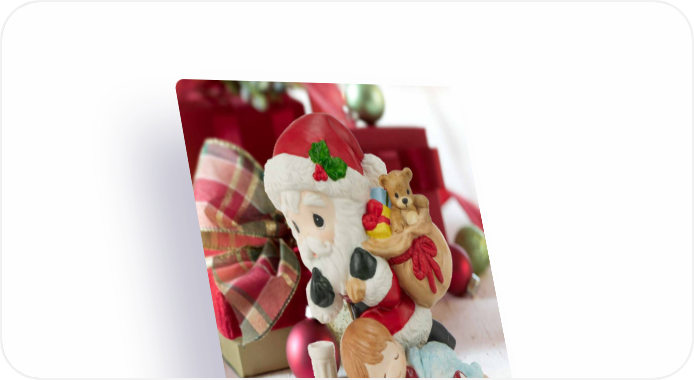 NEW Dear Santa Figurine Give a gift that captures the tales and traditions of Santa. Ever so quietly, St. Nick tiptoes past a slumbering young man. He will surely take a nibble from a cookie before placing the gifts beneath the tree! Bisque porcelain. 5"H. 241035 | $90.00 Personalized | $96.00 Santa’s On His Way Figurine Milk and cookies for Santa are timeless. Surely St. Nick deserves some treats while traveling on Christmas Eve, and this festive young lady is happy to oblige. Bisque porcelain. 5.25"H. 211041 | $55.00 Personalized | $61.00 8 PreciousMoments.com | 866-336-2554