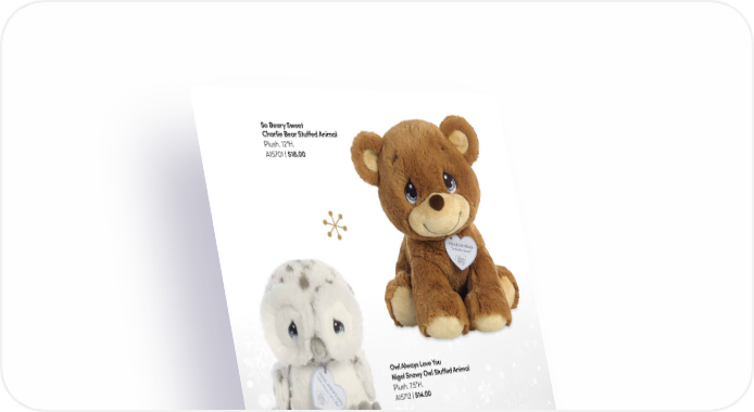 So Beary Sweet Charlie Bear Stuffed Animal Plush. 12"H. A15701 | $18.00 Owl Always Love You Nigel Snowy Owl Stuffed Animal Plush. 7.5"H. A15712 | $14.00 I Make The Moose Out Of Life Miles Moose Stuffed Animal Plush. 8.5"H. A15865 | $14.00 Keep Looking Up RafÏe Giraffe Stuffed Animal Plush. 8.5"H. A15709 | $14.00 49