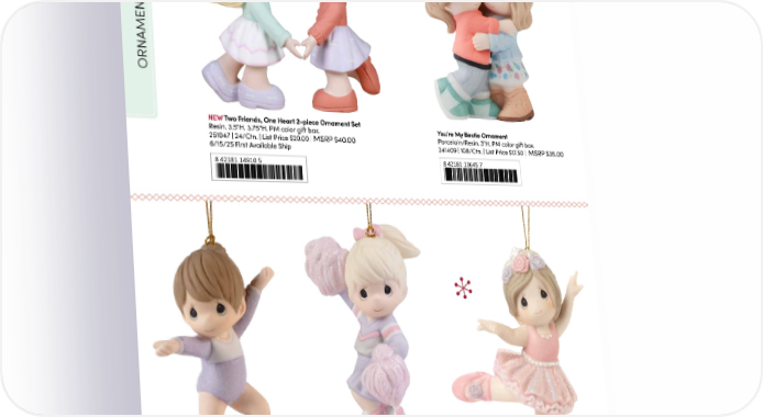 2-piece ornament set keep one, give one! S ORNAMENT NEW Two Friends, One Heart 2-piece Ornament Set You’re My Bestie Ornament Resin. 3.5"H. 3.75"H. PM color gift box. Porcelain/Resin. 3"H. PM color gift box. 251047 | 24/Ctn. | List Price $20.00 | MSRP $40.00 241409 | 108/Ctn. | List Price $17.50 | MSRP $35.00 6/15/25 First Available Ship 8 42181 14910 5 8 42181 13645 7 Reach For The Sky Ornament Greatness Is Already Inside You Porcelain. 3.5"H. PM gift box. Ornament 221026 | 108/Ctn. Believe In Yourself Ornament MSRP $30.00 Porcelain. 3.5"H. PM gift box. List Price $15.00 | Porcelain. 4.25"H. PM gift box. 211036 | 108/Ctn. 8 42181 12790 5 201038 | 72/Ctn. MSRP $30.00 List Price $15.00 | MSRP $30.00 List Price $15.00 | 8 42181 12477 5 8 42181 11971 9 28