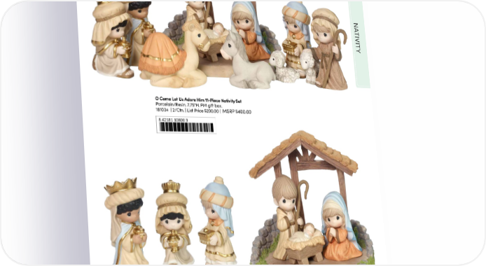 NA TIVITY O Come Let Us Adore Him 11-Piece Nativity Set Porcelain/Resin. 7.75"H. PM gift box. 181034 | 2/Ctn. | List Price $200.00 | MSRP $400.00 8 42181 10800 3 We Three Kings 3-Piece Set Porcelain. 4.75"H. PM gift box. 181052 | 24/Ctn. | List Price $70.00 | MSRP $140.00 O Come Let Us Adore Him Holy Family 4-Piece Set 8 42181 10929 1 Porcelain/Resin. 7.75"H. PM gift box. 181051 | 4/Ctn. | List Price $75.00 | MSRP $150.00 8 42181 10928 4 17