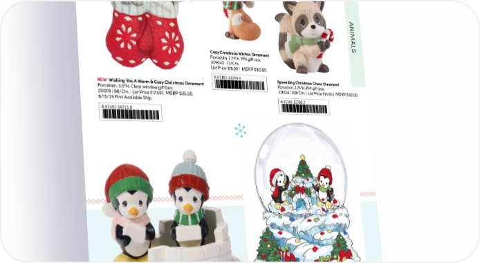 ANIMAL S Cozy Christmas Wishes Ornament Porcelain. 2.75"H. PM gift box. 209042 | 72/Ctn. List Price $15.00 | MSRP $30.00 8 42181 12299 3 Spreading Christmas Cheer Ornament NEW Wishing You A Warm & Cozy Christmas Ornament Porcelain. 2.75"H. PM gift box. Porcelain. 3.5"H. Clear window gift box. 221024 | 108/Ctn. | List Price $15.00 | MSRP $30.00 251019 | 96/Ctn. | List Price $17.50 | MSRP $35.00 6/15/25 First Available Ship 8 42181 12788 2 8 42181 14711 8 We Make A Cool Team Figurine NEW Decking The Igloo With Holiday Cheer Resin. 4.75"H. PM color gift box. Musical Snow Globe 231045 | 12/Ctn. Plays “Deck The Halls”. List Price $25.00 | MSRP $50.00 Resin/Glass. 5.5"H. PM color gift box. MSRP $50.00 251447 | 12/Ctn. | List Price $25.00 | 8 42181 13114 8 6/15/25 First Available Ship 8 42181 14933 4 23
