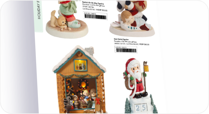 Santa’s On His Way Figurine Porcelain. 5.25"H. PM gift box. FUN 211041 | 24/Ctn. Y List Price $27.50 | MSRP $55.00 A 8 42181 12483 6 HOLID Dear Santa Figurine Porcelain. 5"H. PM color gift box. 241035 | 24/Ctn. | List Price $45.00 | MSRP $90.00 8 42181 13652 5 Home For The Holidays Lighted Shadow Box Resin/Glass. Includes 3 AAA batteries. Father Christmas Countdown To Christmas Calendar 5"L x 4.5"W x 6"H. PM gift box. Resin. 6"H. PM gift box. 241108 | 8/Ctn. | List Price $25.00 | MSRP $50.00 MSRP $35.00 211407 | 12/Ctn. | List Price $17.50 | 8 42181 13638 9 8 42181 12497 3 32