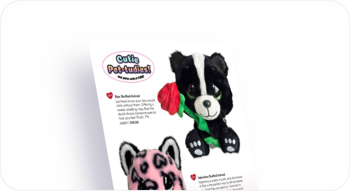 NEW Bae Stuffed Animal Let them know your day would stink without them. Offering a sweet-smelling rose, Bae the skunk shows someone special how you feel. Plush. 7"H. 246811 | $10.00 NEW Valentina Stuffed Animal Valentina is pretty in pink, and she knows it! She is the perfect way to tell someone you think they are spot on. Give her to someone you love, and they are sure to be your forever Valentine. Plush. 7"H. 246812 | $10.00 NEW Mele Stuffed Animal Ask someone sweet to be your Valentine! Adorable Mele the bear holds a honeypot with a bee on it while “Bee My Honey” appears on his feet. Plush. 7"H. 246810 | $10.00 18 PreciousMoments.com | 866-336-2554