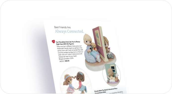 Best Friends Are Always Connected. NEW Our Friendship Feels Like You’re Always Right Here With Me Figurine They may be in different time zones, but these best friends might as well be in the same room with how connected they feel. Give this endearing figurine to a friend or sister who isn’t close in distance but will always be near to your heart. Bisque porcelain. 5.5"H. 242022 | $90.00 Friends Make The World A Wonderful Place Musical Snow Globe There is no greater gift on the planet than friendship. This snow globe features two friends who are clearly on top of the world as they make a heart shape with their arms. Plays “I’d Like To Teach The World To Sing”. Resin/Glass. 6"H. 232105 | $45.00 A Sweet Friendship Refreshes The Soul Figurine Let your best friend know just how important she is with a gift that serves as a lasting reminder of how much you value her friendship. Bisque porcelain. 4.5"H. Without Masks | 213008 | $75.00 With Masks | 213008E | $75.00 13