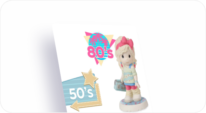 NEW Girls Of The Decades Figurines Each decade offers a unique style and attitude. Perfect for fashionistas of all ages, these pieces celebrate the ever- evolving nature of fashion throughout the years. Bisque porcelain. 4.75"H. Feeling Nifty In The 50’s Exclusive | 249004 | $40.00 Having A Blast In The 60’s Exclusive | 249005 | $40.00 Exclusive | 249006 | $40.00 Groovy Time In The 70’s Looking So Rad In The 80’s Exclusive | 249007 | $40.00 Da Bomb Diggity In The 90’s Exclusive | 249008 | $40.00 Personalized | $46.00 15