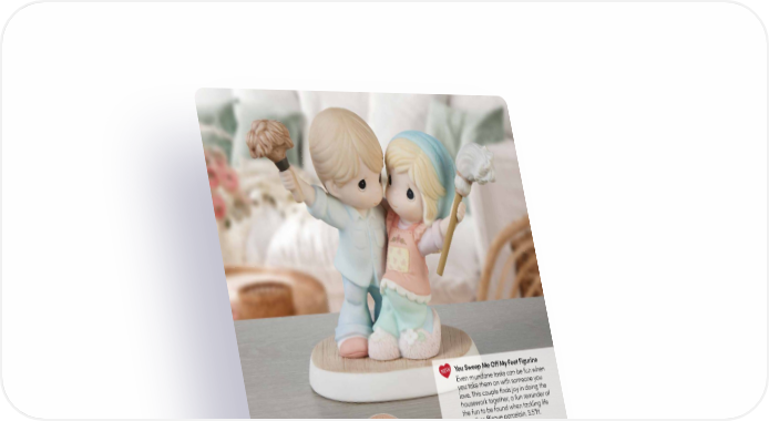 NEW You Sweep Me Off My Feet Figurine Even mundane tasks can be fun when you take them on with someone you love. This couple finds joy in doing the housework together, a fun reminder of the fun to be found when tackling life together. Bisque porcelain. 5.5"H. 241026 | $80.00 Personalized | $86.00 Life Is Butter Together Figurine Every moment spent together brings you closer and helps you see what truly matters in life: love. Bisque porcelain. 4.25"H. 221018 | $85.00 I’m Wrapped In Your Love Figurine The air is chilled, but this sweet couple wraps up in a favorite blanket to enjoy their time outdoors. Give this romantic figurine to someone who makes you feel wrapped in love. Bisque porcelain. 4.75"H. 231023 | $85.00 3