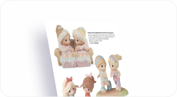 A Sweet Friendship Refreshes The Soul Figurine Let your best friend know just how important she is with a gift that serves as a lasting reminder of how much you value her friendship. Bisque porcelain. 4.5"H. 213008 | $75.00 Find Your Happy Pace Figurine Let a special friend know there is no one else you would rather have by your side. Forever willing to go the extra mile for one another, these two besties are the perfect way to honor a precious friendship. Bisque porcelain. 5"H. 232020 | $60.00 Two Friends, One Heart Figurine Best friends share shoes and accessories for sure, but also hopes, secrets, memories, and so much love! Bisque porcelain. 6"H. 192001 | $70.00 I’ve Got Your Back Figurine Togetherness when you need it most is what true friendship is all about. It is comforting to know you always have someone to lean on, someone to lend an ear, and someone who always has your back. Bisque porcelain. 4.5"H. 203008 | $75.00 10 PreciousMoments.com | 866-336-2554