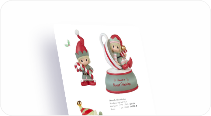 PreciousMoments.com | 866-336-2554 12 Christmas Is Coming, Enjoy The Ride Figurine Bisque porcelain. 5.25"H. 211013 | $65.00 $38.50 Cheers To A Sweet Holiday Musical plays “Jingle Bells”. Resin. Mini Figurine | 3"H. | 231410 | $20.00 Musical | 5"H. | 231109 | $45.00 Fill Your Holidays With Special Surprises Ornament Bisque porcelain. 4.25"H. 221014 | $40.00 $26.25