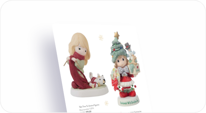 27 Share The Magic Of Christmas Musical Snow Globe Plays “O Tannenbaum”. Resin/Glass. 4"H. 231404 | $55.00 Take Time To Unwind Figurine Bisque porcelain. 5.25"H. 241036 | $55.00 Personalized | $61.00 Overloaded With Christmas Joy Figurine Resin. 6"H. 251030 | $60.00 NEW