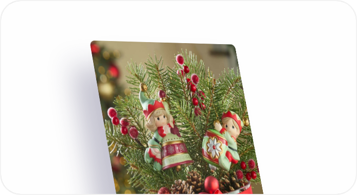13 Ringing In The Holiday Season Bell Ornament Look who’s ringing in the season! A colorfully dressed elf takes a break from Santa’s workshop to ring in the season with her holiday bell. Bisque porcelain. 3.5"H. 251041 | $40.00 NEW Deck The Halls Ornament An adorable elf holds tight to a beautiful ornament so he can swing from the tree boughs. Bisque porcelain. 3.5"H. 241028 | $35.00