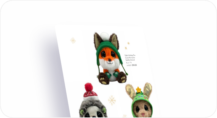 PreciousMoments.com | 866-336-2554 48 Fable Holiday Fox Cutie Pet-tudies Stuffed Animal Plush. 7"H. 249809 | $10.00 Hopper Holiday Bunny Cutie Pet-tudies Stuffed Animal Plush. 7"H. 249810 | $10.00 Roly Holiday Hedgehog Cutie Pet-tudies Stuffed Animal Plush. 7"H. 249811 | $10.00 Kris Holiday Polar Bear Cutie Pet-tudies Stuffed Animal Plush. 7"H. 249812 | $10.00