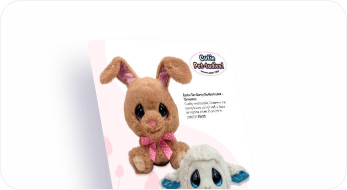Easter Tan Bunny Stuffed Animal – Cinnamon Cuddly and lovable, Cinnamon the tawny bunny cannot wait to share springtime smiles. Plush. 6.5"H. 236833 | $10.00 Easter Lamb Boy Stufffed Animal – Lambie Tuck Lambie into an Easter basket for a special springtime surprise. Plush. 6.5"H. 236834 | $10.00 Easter Lamb Girl Stuffed Animal – Lovie This sweet little lamb a loveable addition to Easter celebrations. Plush. 6.5"H. 236831 | $10.00 6 PreciousMoments.com | 866.336.2554