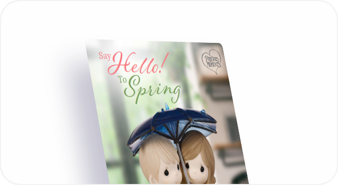PreciousMoments.com | 866.336.2554 2 Special Offer YOURS FOR ONLY with purchase of $30.00 or more. ($35.00 Retail Value) $ 17 .50 The Grace Of God Be With You Always Musical Plays Amazing Grace. Resin. 5.5"H. 249029 | $35.00 $17.50 NEW Youre My Sun When The Clouds Roll Through Figurine Arm-in-arm, this couple enjoys a stroll together, not letting the rain dampen their spirits. A truly unique figurine for your sweetheart, the umbrella and raindrops are designed with realistic detail. Bisque porcelain/Resin. 6.5"H. 242004 | $95.00 NEW