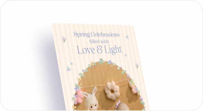 PreciousMoments.com | 866-336-2554 2 Wishing You A Hoppy Easter Figurine These figurines make the perfect addition to any Easter basket or centerpiece. Girl 212015 | $50.00 $32.50 Boy 212016 | $50.00 $32.50 Countdown To Easter Book Published by Thomas Nelson, 16 extra thick pages are perfect for young hands to hold as they count backwards from 10 toward Easter – the most important Christian holiday. 5068-4 | $13.00 Valid through 3/31/26 or while supplies last. ONLY $5.00 WITH A $40 PURCHASE Cadabra Bunny Stuffed Animal 246831 | $10.00 $5.00 This adorable Easter Bunny carries an egg with a sweet surprise inside! FAVORITE Easter Gifts, MADE WITH LOVE Photo by @dutcherstefanie