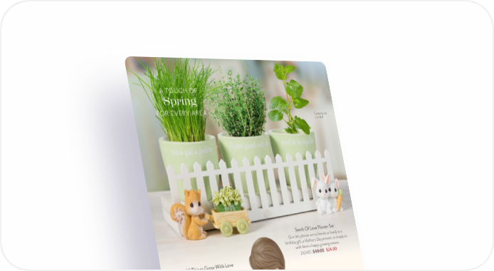PreciousMoments.com | 866-336-2554 8 A TOUCH OF Spring FOR EVERY AREA Waddle Together, Whatever The Weather Duck Musical This charming musical was created to bring a touch of sunshine to any day. It features a sweet duckling dressed for the weather in a pink sun hat, matching bow, and bright yellow rain boots. Plays the soothing sound of raindrops. 252102 | $43.00 Seeds Of Love Planter Set Give this planter set to friends or family as a birthday gift, a Mother’s Day present, or simply to wish them a happy growing season. 242410 | $40.00 $24.00 All Things Grow With Love Figurine This figurine is perfect to encourage someone to never lose faith in their ability to make their dreams blossom. Brunette (shown) 222014 | $60.00 $36.00 Blonde 222014D | $60.00 $36.00 Contents not included. Gnome Sweet Gnome Garden Stone 232414 | $30.00 $7.50 NEW