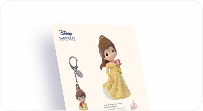 PreciousMoments.com | 866-336-2554 22 An Enchanting Moment Awaits Disney Belle Figurine Beautiful Belle holds an iridescent rose as she looks toward a bright future filled with enchanting moments. Resin. 5"H. 259414 | $26.75 Disney Belle Backpack Clip Add a little beauty and princess pizzazz to any backpack, purse, or bag. PVC. 2.25"H. 239708 | $6.00 True Beauty Disney Belle Covered Box Gazing into her mirror, this pretty princess is dressed just like Belle as she sits atop a lovely covered box. Resin. 4"H. 202038 | $32.25