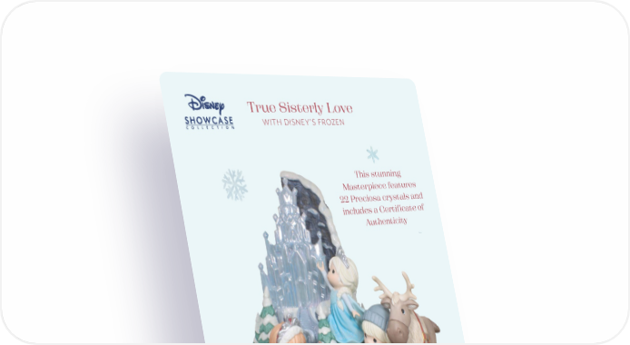 May You Always Find The Magic Within Disney Frozen Masterpiece Figurine This Limited Edition hand-numbered masterpiece is designed for dedicated Disney Frozen fans and collectors. Meticulously crafted, it features beloved characters Elsa, Anna, Olaf, Kristoff, and Sven against Elsa’s Ice Castle. With only 500 pieces worldwide, it celebrates the themes of sisterhood, courage, and adventure that have made Frozen a global phenomenon. Bisque porcelain/Wood. 16"L x 13"W x 15.75"H. 252025 | $1,100.00 PreciousMoments.com | 866-336-2554 12 NEW This stunning Masterpiece features 22 Preciosa crystals and includes a Certificate of Authenticity True Sisterly Love WITH DISNEY’S FROZEN