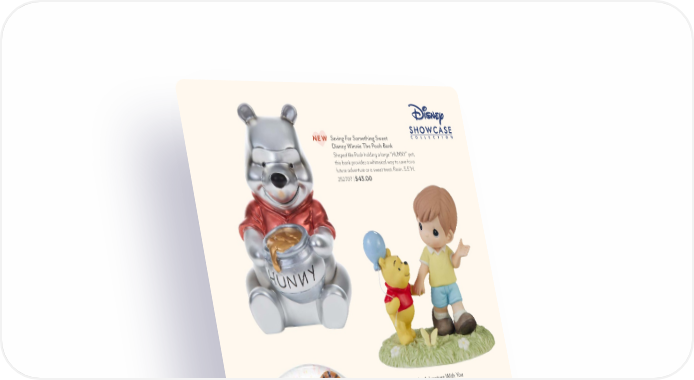 5 It’s Always An Adventure With You Disney Winnie The Pooh Figurine Christopher Robin and Winnie the Pooh walk hand-in-hand toward their next fun adventure. Bisque porcelain. 5"H. 232010 | $85.75 © Disney. Based on the “Winnie The Pooh” works by A.A. Milne and E.H. Shepard. Saving For Something Sweet Disney Winnie The Pooh Bank Shaped like Pooh holding a large “HUNNY” pot, this bank provides a whimsical way to save for a future adventure or a sweet treat. Resin. 5.5"H. 252707 | $43.00 NEW You’re Sweet As Hunny Disney Winnie The Pooh Trinket Box This trinket box celebrates Disney’s Winnie the Pooh’s 100th Anniversary in 2026. It has a removable lid with Pooh on a tree stump, revealing a space for jewelry or small treasures. Resin. 3.75"H. 252706 | $35.70 NEW What A Pal, What A Bear, What A Friend Disney Winnie The Pooh Musical Snow Globe Tigger is so excited to be Winnie the Pooh’s friend that he has knocked him over with his enthusiasm! Cleverly designed on a “hunny” pot base, it plays “Many Adventures of Winnie the Pooh”. Requires 3AA batteries, included. Resin/Glass. 5.75"H. 241703 | $85.00